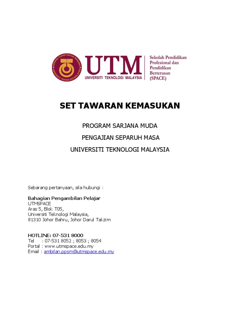 Kandungan Set Tawaran Kemasukan Utm Pdf